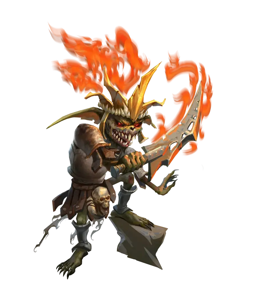 Leader of the goblin ghoul tribe Supposedly to be found in the pit In Session 6: While not defeated, his graveknight armor was been submerged into holy water leading to a cycle of rejuvenation and death